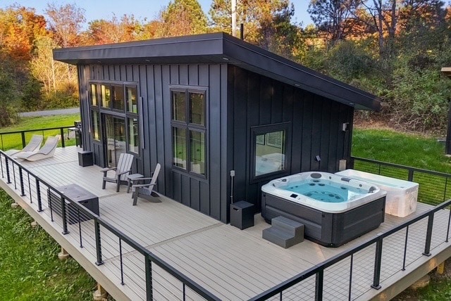 With a spacious entrance door and large windows, The Outlook is the perfect cabin to enjoy spacious views and landscapes with a modern design.